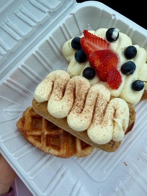 A croissant‑waffle tasting platter is exactly the kind of thing that makes sense only after 13.1 miles.