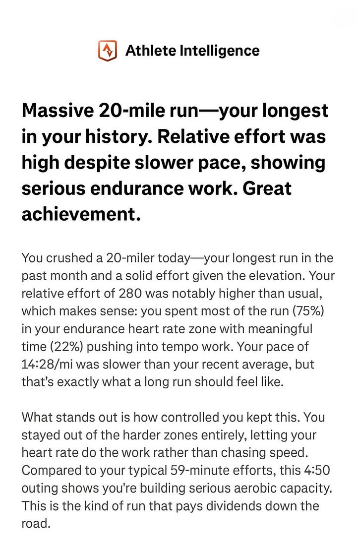 Yesterday’s 20‑miler almost didn’t happen — I woke up feeling sick and genuinely questioned whether I should push it. But I took it mile by mile and got it done. These are the runs that remind you why marathon training is equal parts physical and mental.