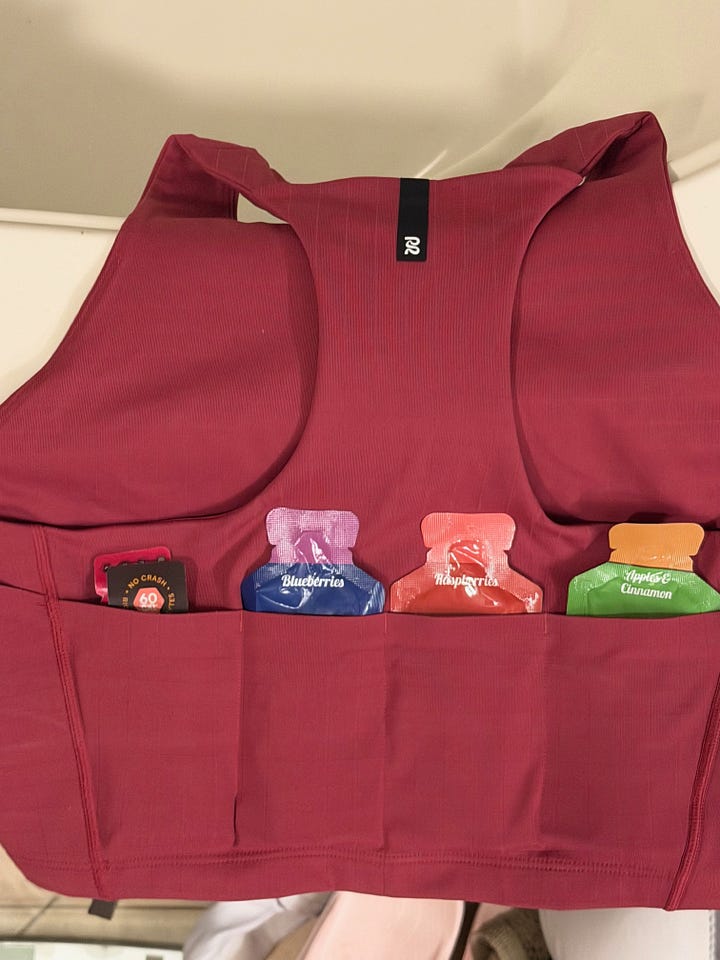 Because no training cycle is complete without a questionable decision, I also made the mistake of testing a new race‑day crop top without pre‑washing it. Mid‑run, I looked down and saw color bleeding onto my skin and immediately panicked that I was chafing through the fabric.
