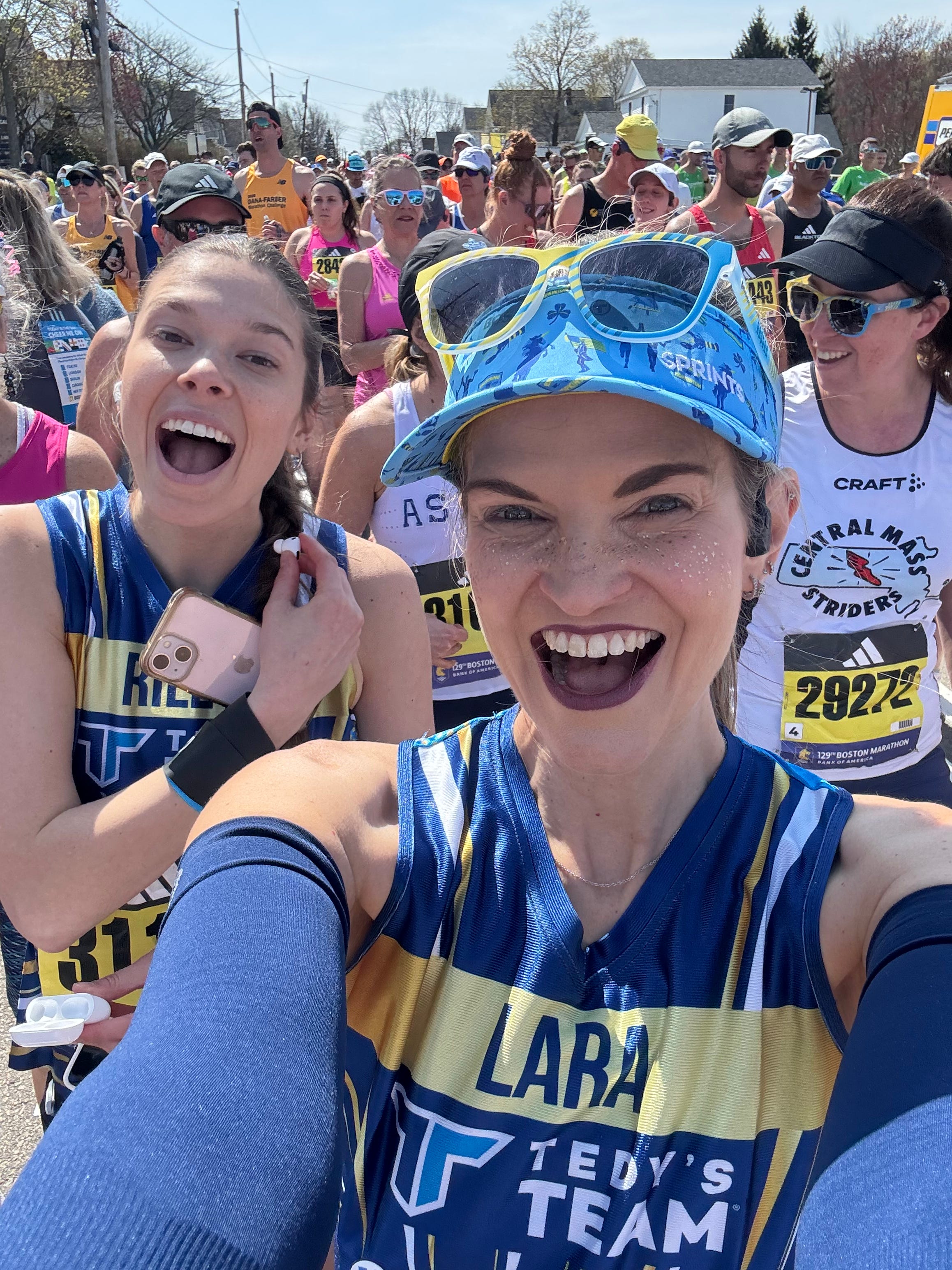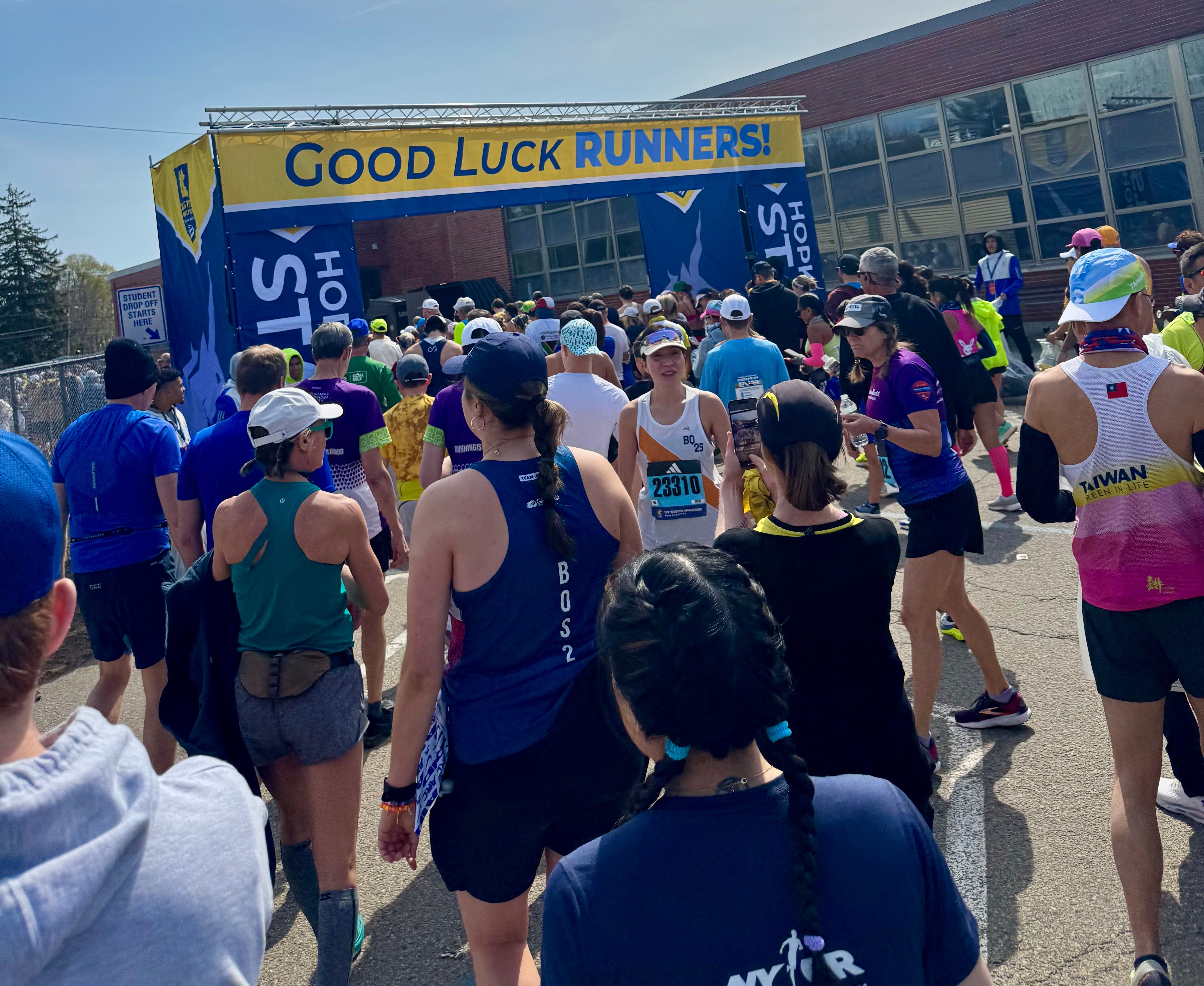 Race day itself, I was just grateful we hit the jackpot with nice weather — no rain in the forecast, not too cold, not too hot. I’ll take it. We met up at the Lenox Hotel as a team before making our way over to our charity bus which took us to Charity Village in Hopkinton. The ride went for a while but it flew by, including a lovely group sing of “Friends in Low Places.” Never too early.